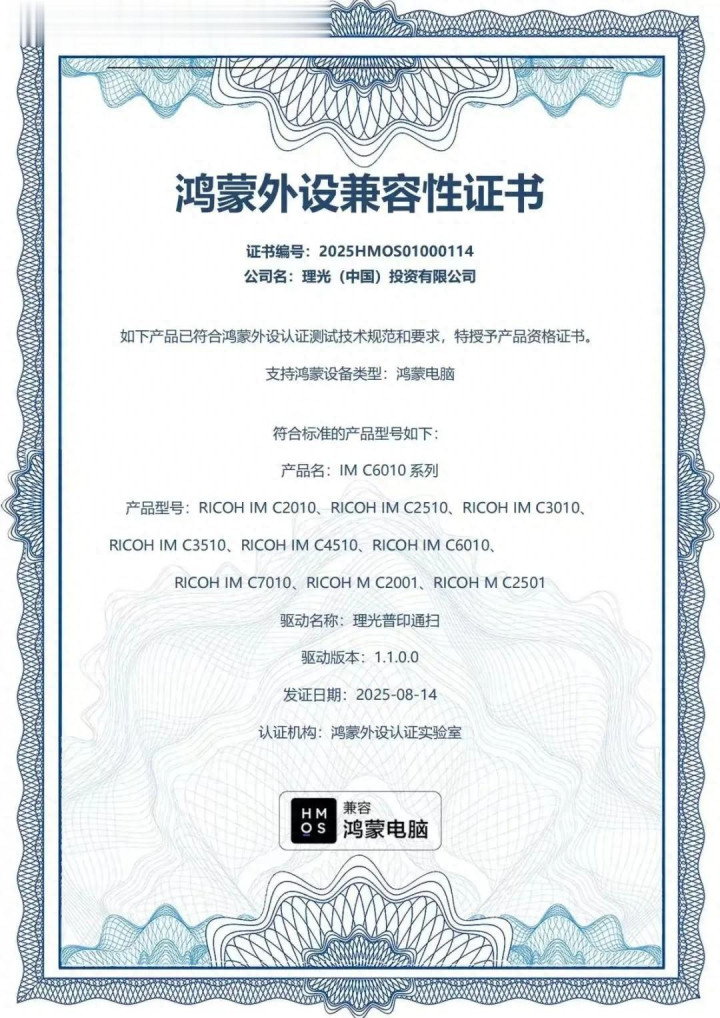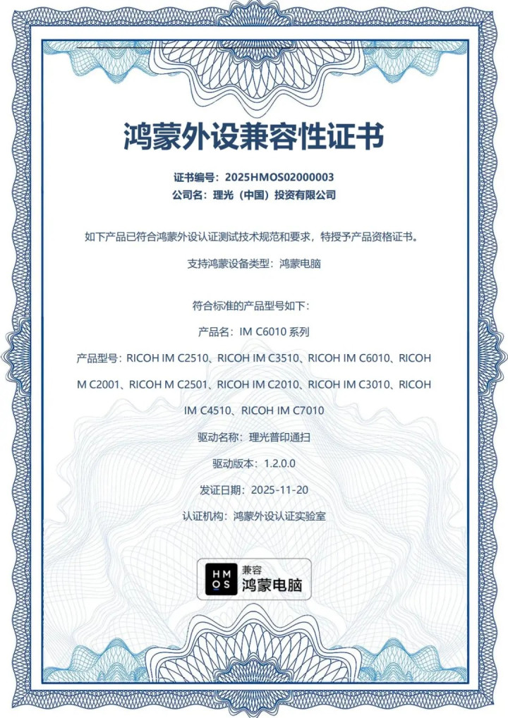 继8月完成主流机型认证后,理光本次新增47款打印机认证机型,袪除了全新上市的多功能数码复合机及前代居品,为不同范畴的办公场景提供了无缺的国产化打印处理决议。更具行业真义的是,理光当先攻克扫描仪类拓荒的时刻壁垒,赢得首批兼容认证,填补了鸿蒙生态在高精度文档集结领域的空缺,终明晰从打印到扫描的文印闭环。