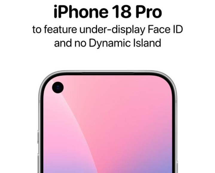 那这个单独的前摄镜头还会居中摆放吗?外媒传出了新的音书,声称iPhone 18 Pro与iPhone 18 Pro Max将会取消灵动岛的“药丸式”挖孔,转而汲取左上角单打孔前摄+屏下Face ID的设想,况兼还流传一张渲染图。