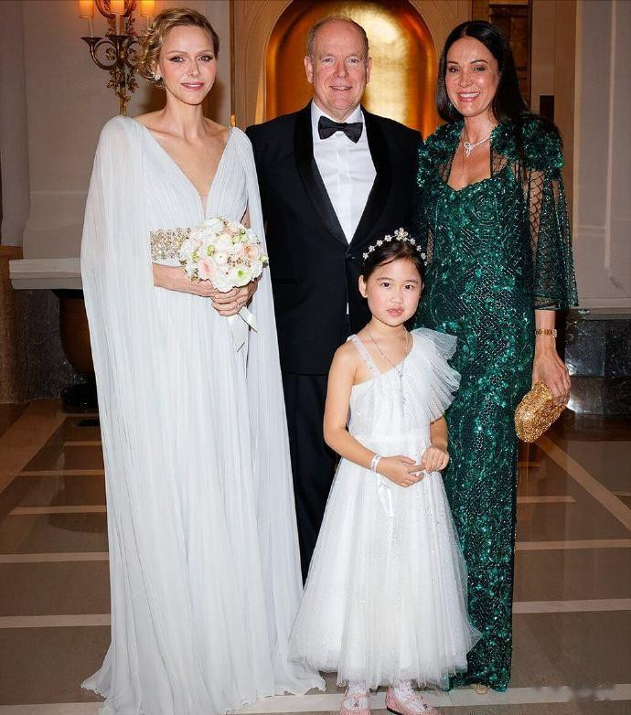 夏琳校服和摩纳哥亲王全部投入圣诞派对,好意思东谈主鱼王后穿戴一袭Jenny Packha白色大氅裙,惊艳亮相。