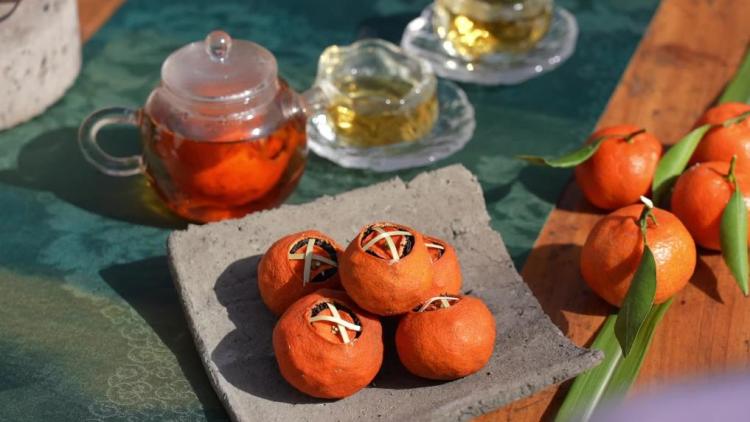 桔红茶的制作,需先轻轻翻开桔皮尖端,防备取出内瓤,随后填入精制的祁门红茶,临了以竹条尽心封口。扫数工艺经过完成后,一颗颗形似红色灯笼的桔红茶便呈目前目前。桔红茶在完竣保留小红桔原始外形的同期,使桔子的果香与红茶的甘醇互相引发,口舌分明。