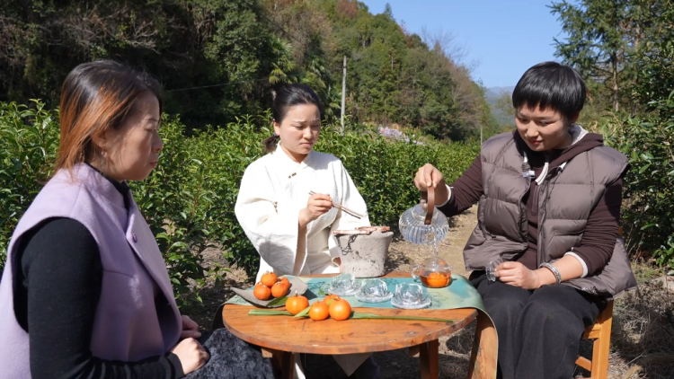 冬日时节,在安徽省黄山市祁门县新安镇龙源村,当地村民将小红桔和祁门红茶和会在一齐,制作出果味茶饮“桔红茶”。